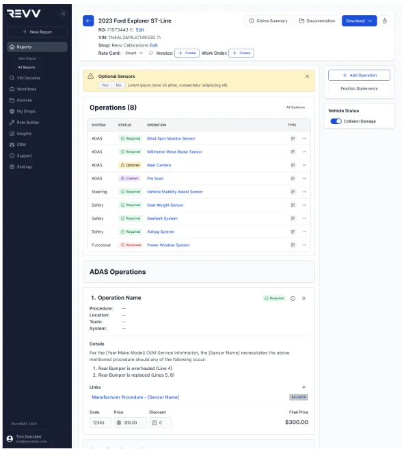 Automated identification eliminates manual OEM research while remaining fully accurate. Instant documentation generation removes hours of admin work per vehicle. Your team moves repairs forward while Revv handles the busywork that used to slow you down.